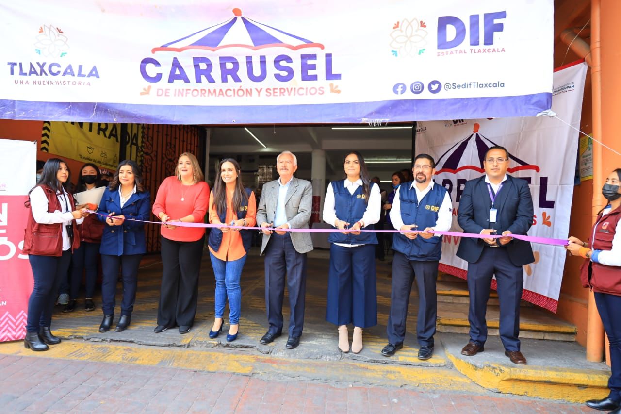 Este martes, el Ayuntamiento de Chiautempan a través del Sistema Municipal para el Desarrollo Integral de la Familia (SMDIF) en conjunto con el Sistema Estatal para el Desarrollo Integral de la Familia (SEDIF) realizaron el corte de listón inaugural para el Carrusel de Información y Servicios que integró a más de 40 dependencias estatales y federales para aproximar sus beneficios a los chiautempenses.