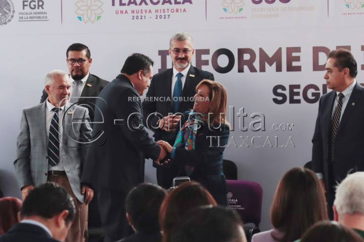 Tlaxcala, Tlax.-25-Julio-2023. Durante el informe del segundo semestre de incidencia delictiva, la gobernadora del estado de Tlaxcala, destacó que el número de delitos registrados en la entidad van a la baja a comparación del año pasado, lo que posiciona a Tlaxcala como el más seguro a nivel nacional, seguido del estado de Yucatán.