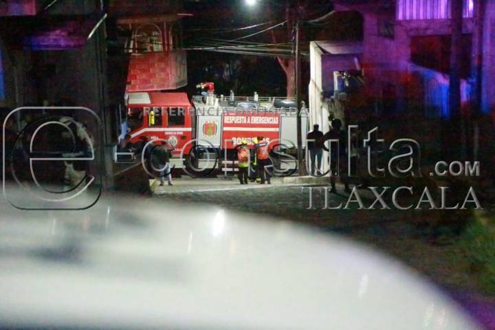 Tlaxcala,Tlaxcala.27-Julio-2023. Al interior de una vivienda ubicada en la Avenida Principal, esquina con Prolongación Guerrero, de San Hipólito Chimalpa, fue localizado un cadáver calcinado, presuntamente al arrojarle basura y prenderle fuego. En el sitio laboran peritos para tratar de conservar los indicios.