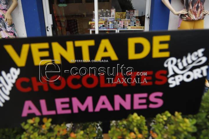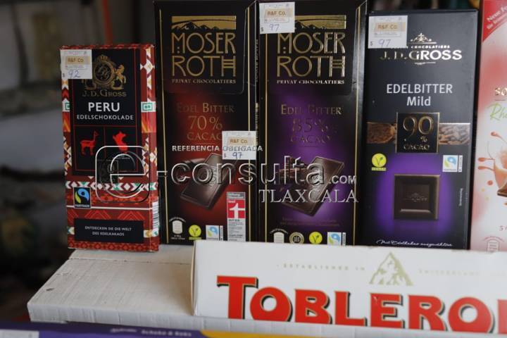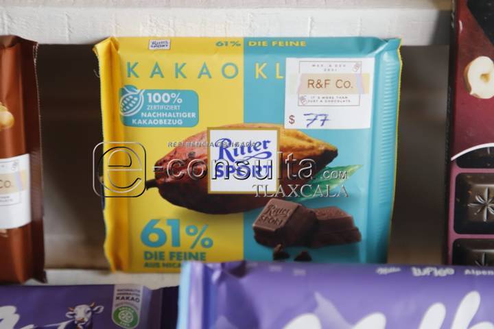 Tlaxcala,Tlaxcala.31-agosto-2023-Como una forma de emprendimiento en un local ubicado sobre la calle Benito Juárez de Tizatlán, se encuentra R&F CO., un establecimiento donde puedes encontrar chocolates alemanes como Milka, Ritter Sport, Schogetten, Moser Roth y J.D. Gross, entre otros, productos con hasta el 90 por ciento de Cacao.