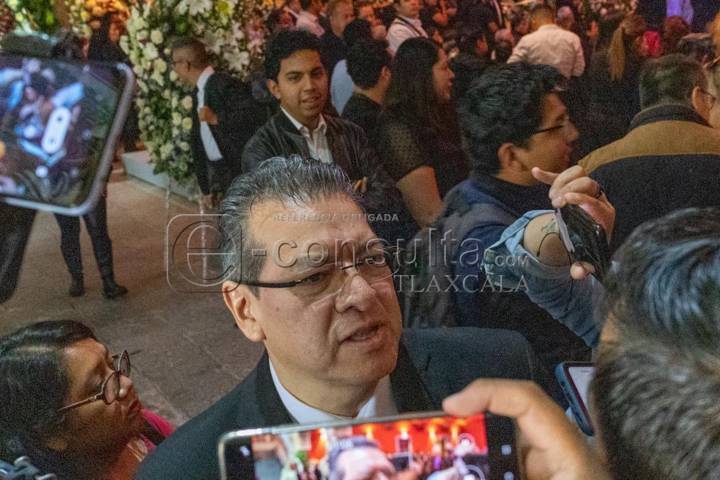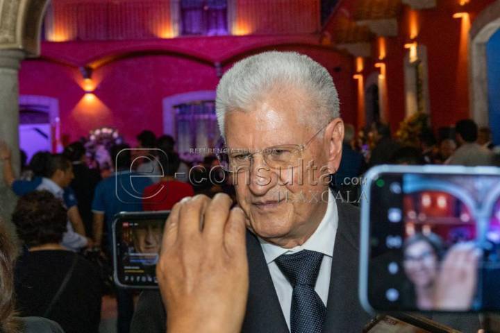 Tlaxcala, Tlax. 17-09-2023. Beatriz Paredes Rangel, Mariano González Zarur, Marco Antonio Mena Rodríguez, José Antonio Álvarez Lima y Alfonso Sánchez Anaya; fueron los ex gobernadores que dieron el último adiós en Palacio de Gobierno a Tulio Hernández, también ex mandatario estatal y político reconocido en la entidad.