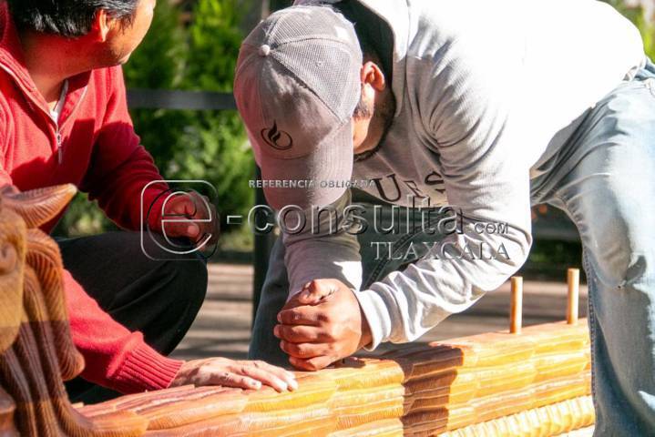 Tlaxcala , Tlax. 04-10-2023.Personal del Ayuntamiento de Tlaxcala, instala nuevamente las letras monumentales de madera que se encuentran en la Plaza de la Constitución, después de que el día de ayer fueran resguardadas por seguridsd ya que se aproximaba una manifestación.