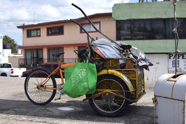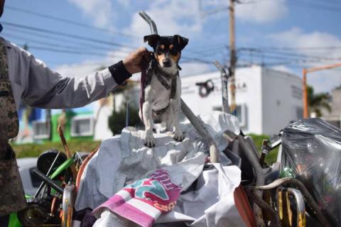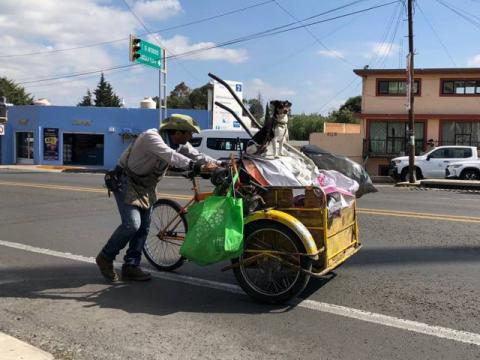 Tlaxcala, Tlax. 30-10-2023- Rubén Hernández González, un hombre de mediana edad, quien vende periódico desde hace 32 años, cerca del Asta bandera en “La Virgen”,es acompañado diariamente por su perro "Nicki", el cual va sobre un triciclo que ocupa no solo para transportar a su fiel amigo, sino para recolectar diversos artículos que le ayudan a realizar trabajos extras de limpieza urbana. Mencionó que si perrito fue un regalo muy especial de su hermana.