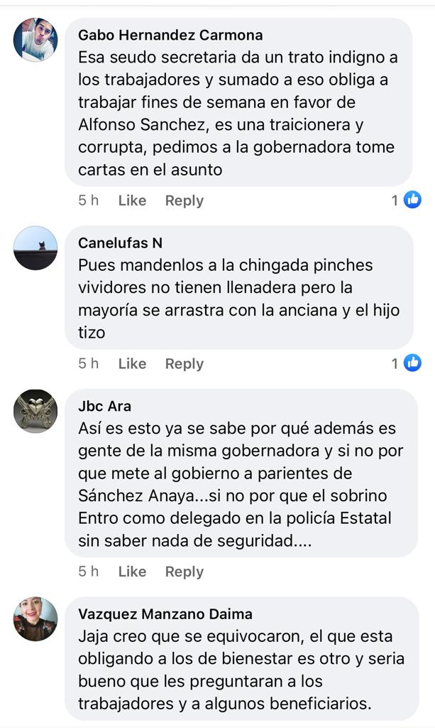 Ante la presión que tienen dentro de la Secretaría del Bienestar de Tlaxcala para apoyar las aspiraciones del junior, Alfonso Sánchez García en su intención de ser senador y posteriormente gobernador, los trabajadores de esta dependencia utilizaron las redes sociales para confirmar lo que ya se había dado a conocer al respecto.