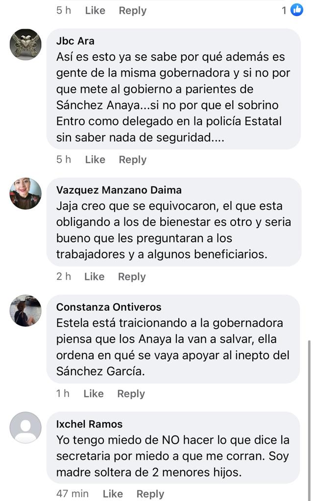 En las redes sociales, confirmaron que fueron presionados por la misma Estela Álvarez, haciendo uso de estos medios debido a las represalias que existen en la dependencia en donde ha habido millonarios contratos para beneficiar a altos funcionarios de este lugar.