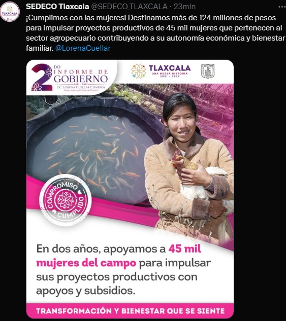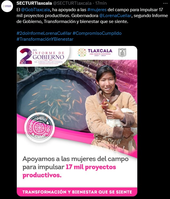 Otra contradicción que confunde a los tlaxcaltecas es que en las redes sociales de la Secretaría de Turismo, se dice que se ha apoyado a las mujeres del campo con 17 mil proyectos productivos, mientras que la Secretaría de Desarrollo Económico, refiere que son 45 mil más mujeres del campo beneficiadas.