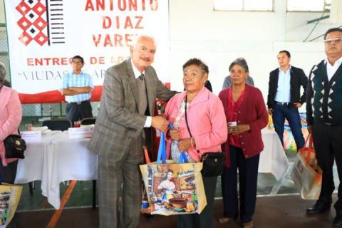 El Presidente Municipal Gustavo Jiménez Romero y la Síndico María Estela Hernández Grande entregaron despensas a las viudas de artesanos de Chiautempan.