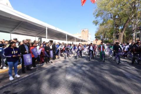 Explicó que fueron entregadas 400 bicicletas y triciclos a jóvenes, estudiantes y emprendedores con una inversión de un millón 867 mil pesos, con lo cual podrán ejercer sus oficios de venta y entrega a domicilio y poder trasladarse a sus planteles educativos.