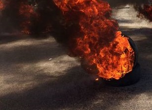 Los quejosos colocaron llantas prendidas sobre la carretera que lleva al municipio vecino de Huamantla con la intención de ejercer presión y se solucione la problemática.