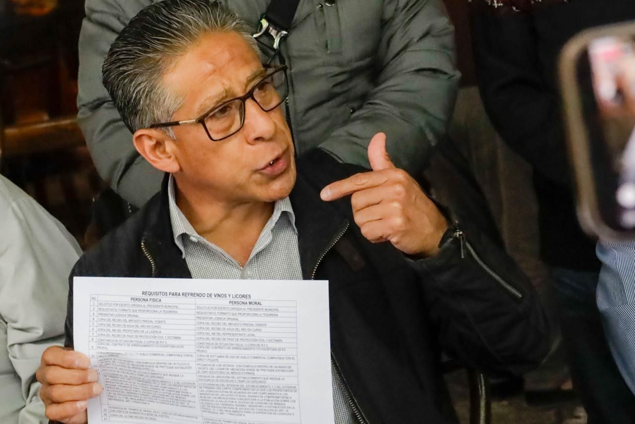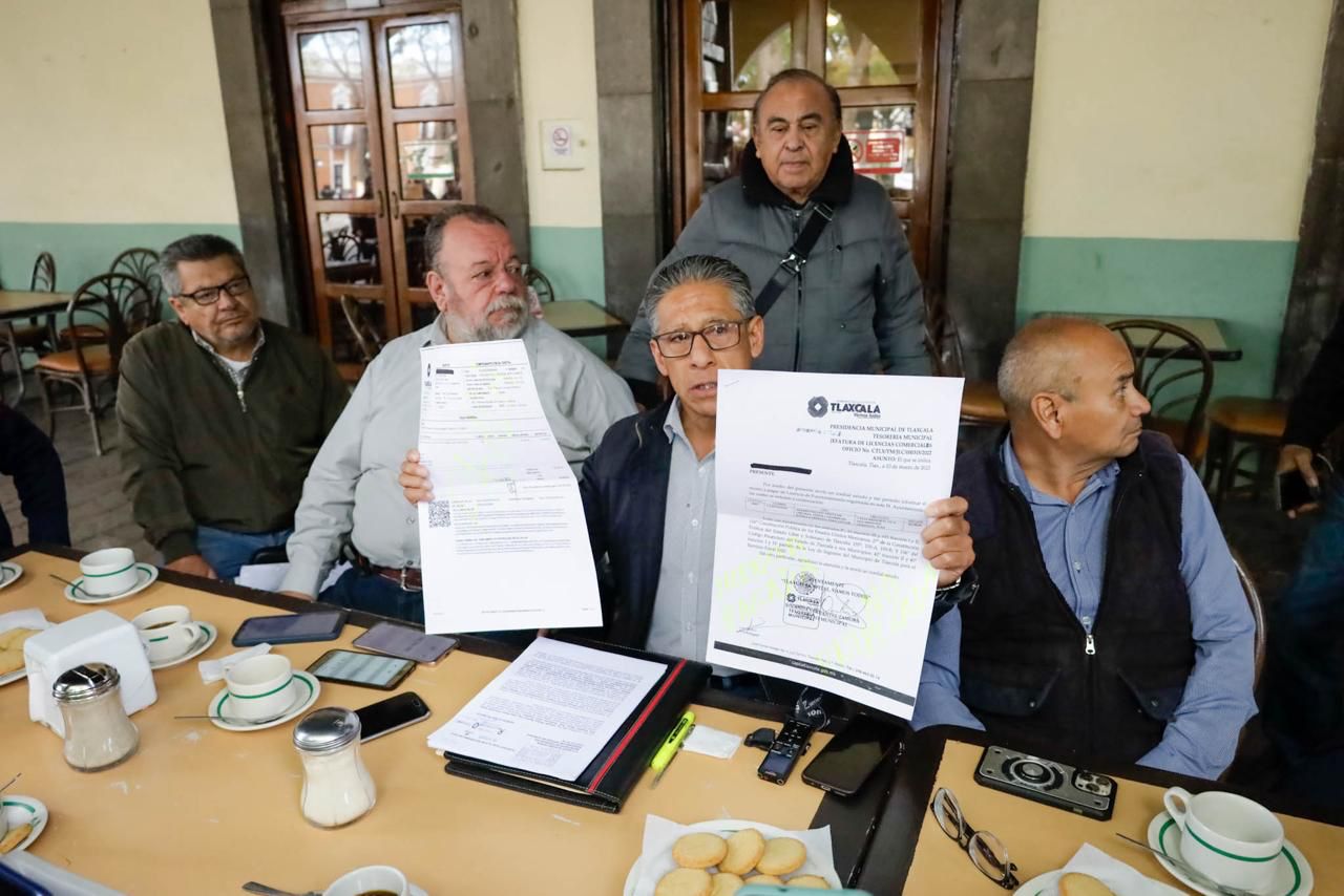 Tlaxcala, Tlax. 12 de febrero de 2024.Un grupo de comerciantes establecidos de la capital tlaxcalteca, representados por Librado Muñoz, ofrecieron esta mañana una rueda de prensa para informar que el Ayuntamiento capitalino a través de la tesorería no les han entregado las licencias de funcionamiento de sus establecimientos con giro comercial de abarrotes con venta de vinos y licores ,y alcohol en general, desde el año pasado por lo piden una solución, de lo contrario dijeron empezarán a tomar otro tipo de acciones.
