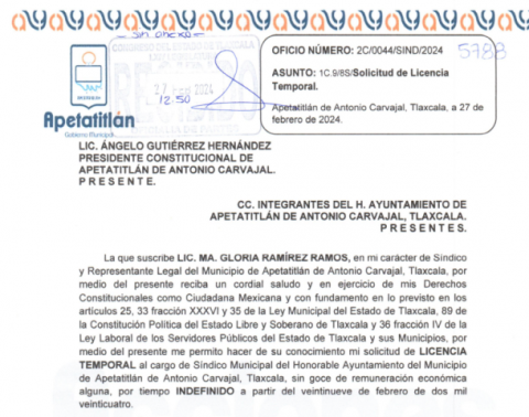La síndica de Apetatitlán, María Gloria Ramírez Ramos, presentó su solicitud de licencia con copia al Congreso del Estado. De inmediato los legisladores de todos los partidos políticos reconocieron su nombre porqué ha saltado de un partido a otro.