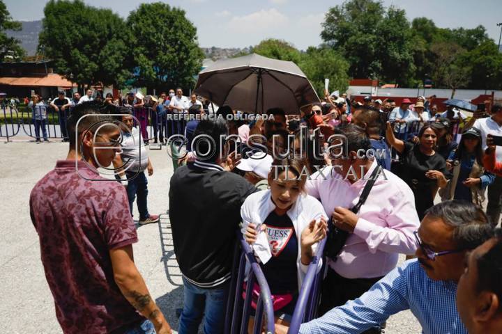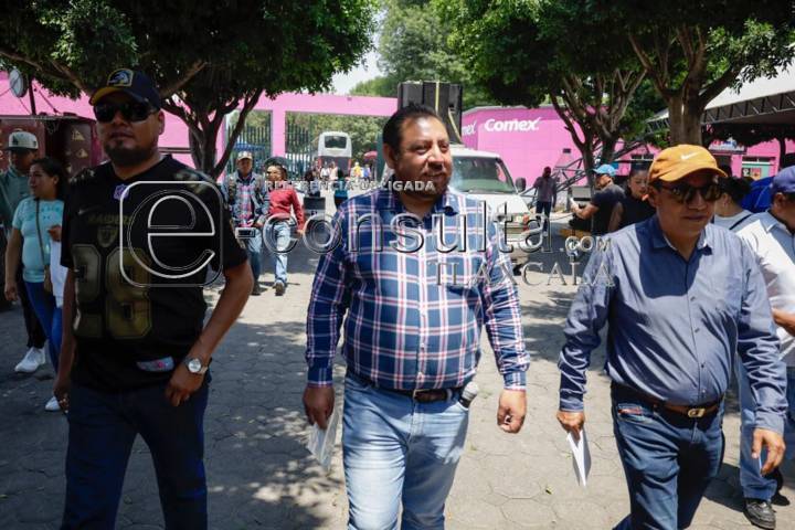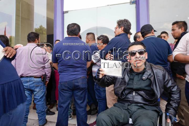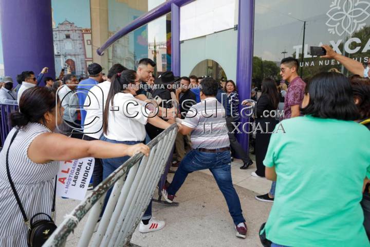 Tlaxcala, Tlax. 03 de mayo de 2024. Este día se dio una confrontación entre grupos antagónicos del sindicato 7 de mayo ya que al celebrarse la rifa de artículos entre agremiados en el centro de convenciones, les negaron el acceso al grupo encabezado por Enrique Escobar, generando descontento y molestia entre los trabajadores que buscaban ingresar al recinto mientras se gritaban y empujaban para poder entrar.