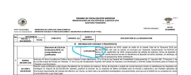 Y es que además de la caja chica que se sabe que fue directamente para la síndico y hoy candidata a la presidencia, en el gobierno de Miguel Muñoz, hay probable daño patrimonial por alrededor de 67 millones de pesos entre el 2017 y el 2021, lo cual está evidenciado en la página oficial del Órgano de Fiscalización Superior (OFS).