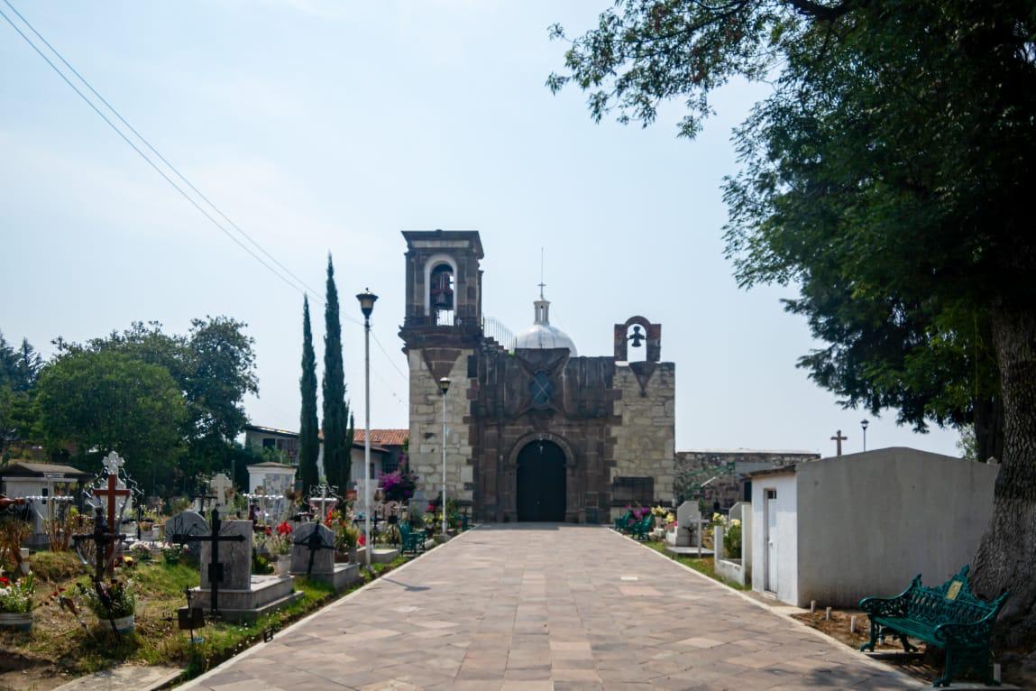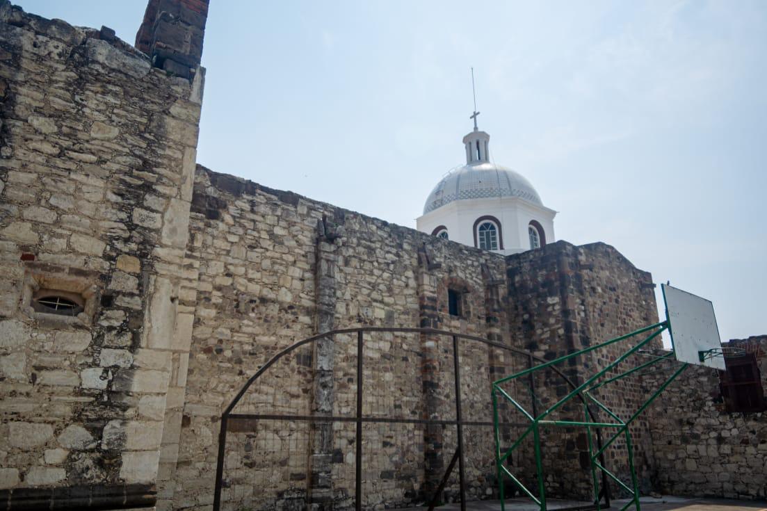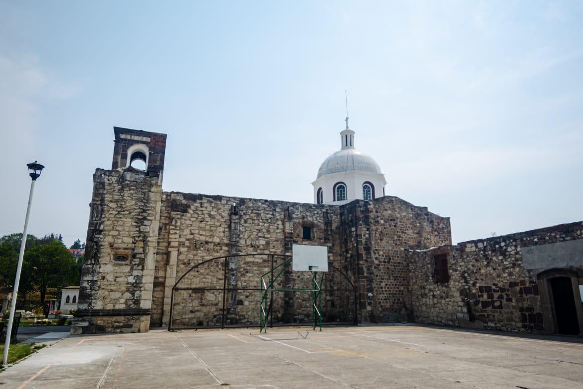 La iglesia se encuentra adyacente a la zona arqueológica de Ocotelulco.