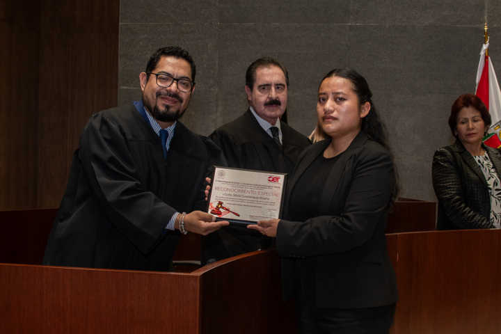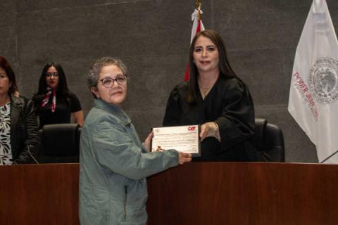 En este caso se entregaron reconocimientos y estímulos por 37 años de servicios a María Elena Rodríguez Ramos, Celerina Cruz Cervantes y la jueza Leticia Caballero Muñoz; con 31 años de servicio a la magistrada Marisol Barba Pérez y la jueza Guadalupe Castillo Lemus; con 30 años de servicio a Heriberta Guadalupe Morales Hernández; 29 años de servicio a Guadalupe Cecilia Rosas Tenorio; 25 años de servicio a René Molina Zárate y Margarita Dorantes Navarrete; Perla Ortega Morales con 22 años de servicio; Midory Castro Bañuelos, María Isabel Ramírez Flores, Edna Merit Cervantes Herrera y Rogelio Hernández Felipe con 20 años de servicio; así como a Víctor Spencer Jiménez Corona con 15 años de servicio.