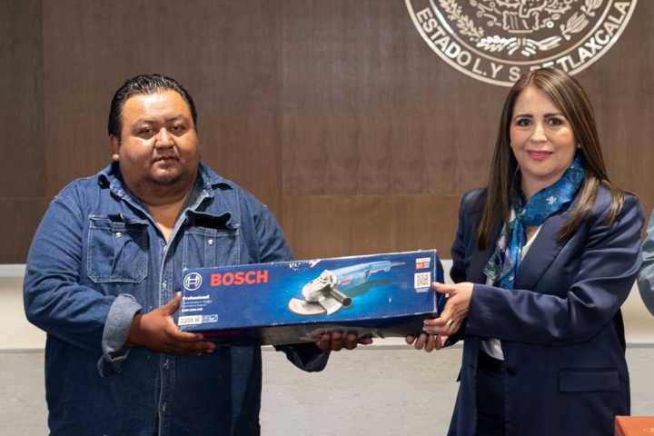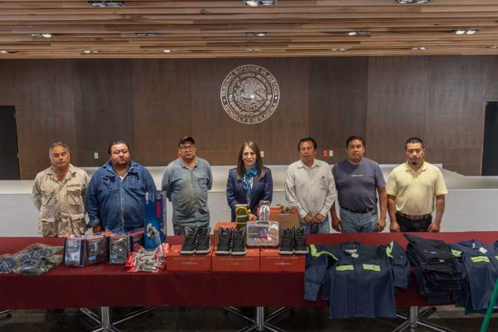 Entre el material entregado por la magistrada destacan guantes anticorte, camisolas, pantalones, botas, fajas industriales con tirantes, lentes de seguridad, caretas de plástico, brocas para concreto, juegos de desarmadores dieléctricos, desarmadores clemeros, probadores de voltaje, sujetadores con matraca, seguetas, esmeriladora, lijadora, niveles, escalera de tijera y esclarea telescópica.
