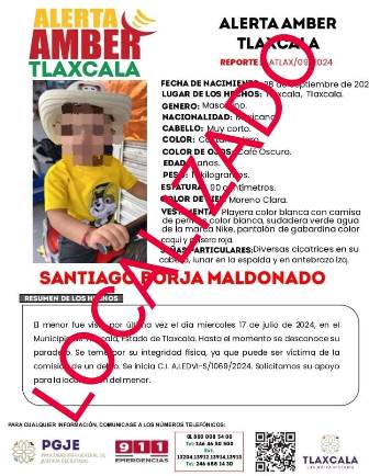 Tras la denuncia presentada por el padre del infante, en la que refería que fue visto por última vez en el municipio de Tlaxcala, al tiempo de asegurar que su expareja se había llevado a su hijo, se activó el protocolo de búsqueda ya que el menor se encontraba en un riesgo inminente.