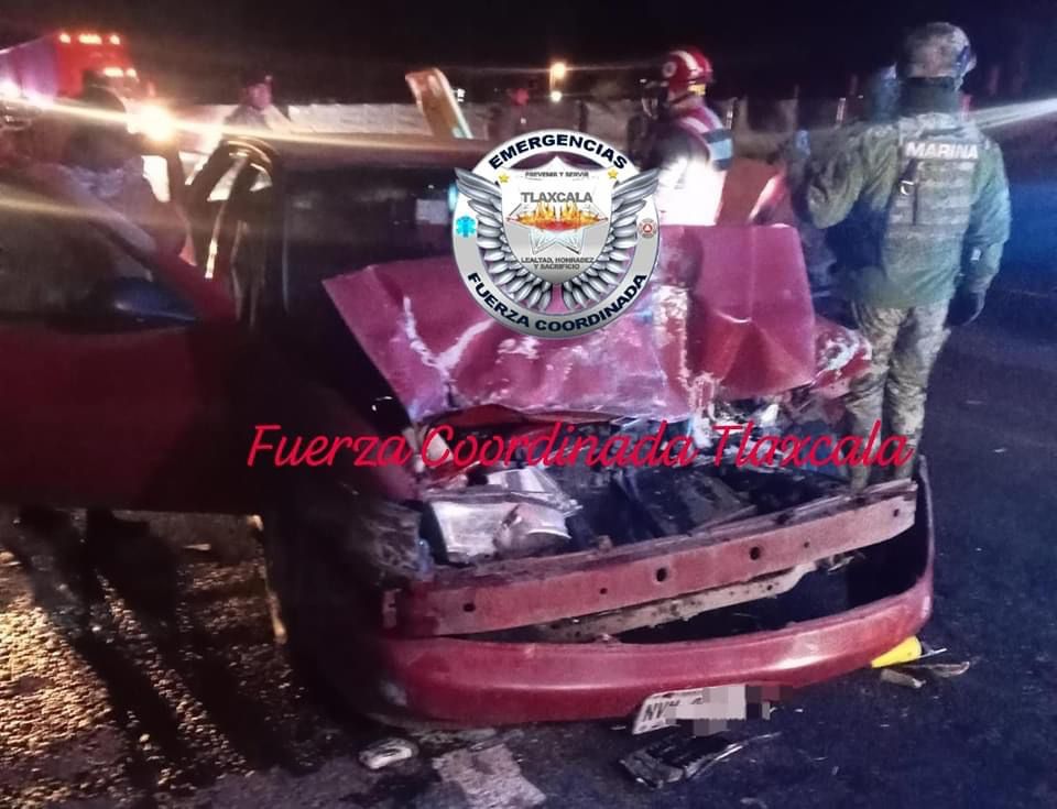Un aparatoso accidente, se registró la tarde de este domingo entre un vehículo particular y un tractocamión sobre la carretera México- Veracruz a la altura del municipio de Xaloztoc.