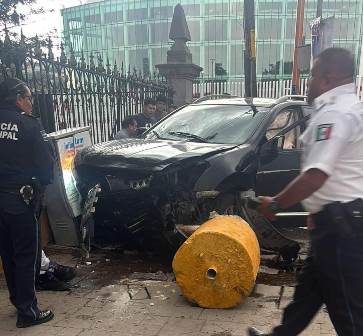 Una camioneta terminó estrellada en las rejas del frente principal de la Secretaría de Cultura Federal en la ciudad de Tlaxcala.