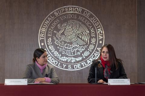 La presidenta del Tribunal Superior de Justicia y del Consejo de la Judicatura del Estado (TSJE-CJE) y la titular de la Secretaría de las Mujeres del Estado de Tlaxcala (SMET), Anel Bañuelos Meneses y Alma Nydia Cano Rodríguez, respectivamente, firmaron este día un convenio de colaboración encaminado a impulsar de manera conjunta estrategias que garanticen la igualdad de género, el respeto, protección y difusión de los derechos humanos en la impartición de justicia.