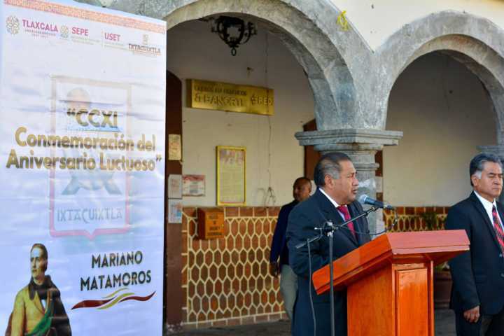 Ixtacuixtla, Tlaxcala - En un acto solemne encabezado por el presidente municipal, Alberto Hernández Olivares, se llevó a cabo la conmemoración del CCXI aniversario luctuoso de Don Mariano Matamoros. En el evento estuvieron presentes autoridades educativas de la USET del área de acción cívica, representantes militares, miembros de la mesa directiva del Congreso del Estado, así como regidores, presidentes de comunidad y personal del ayuntamiento de Ixtacuixtla.