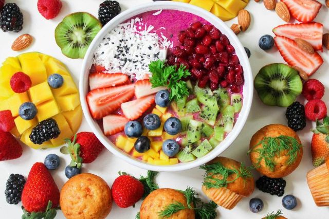 - Frutas y verduras de colores vivos