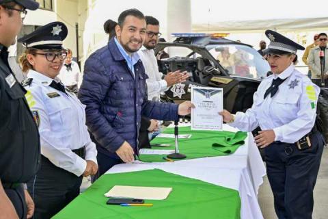 Durante un evento realizado en las instalaciones de la Dirección de Seguridad Pública, Tránsito y Protección Civil, el alcalde destacó la labor de las y los policías quienes -con entrega y profesionalismo- han contribuido a mantener un ambiente de paz en el municipio.