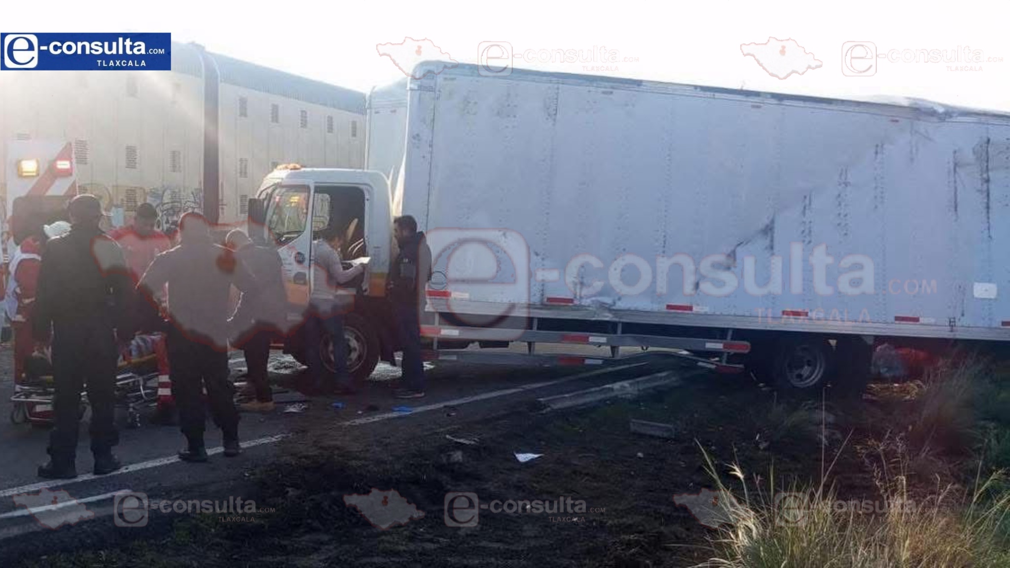 La mañana de este jueves se registró un aparatoso accidente sobre las vías férreas que conducen a la Universidad Tecnológica de Tlaxcala (UTT), luego de que un tren impactara contra un camión de carga perteneciente a la empresa Gonac.