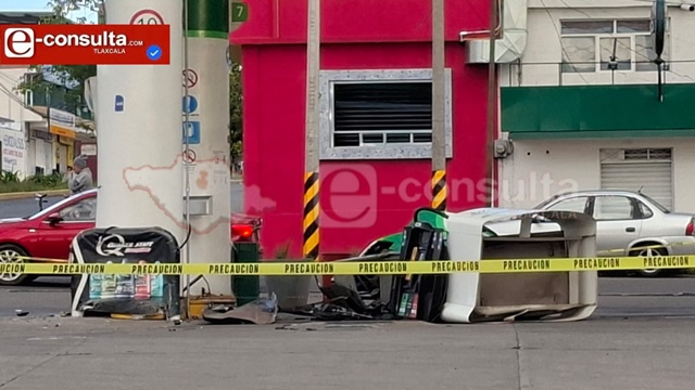 Una intensa persecución policial en calles de Apizaco terminó en caos cuando una patrulla de la Policía Municipal impactó contra una bomba despachadora de gasolina, provocando alarma entre ciudadanos y trabajadores de la estación.