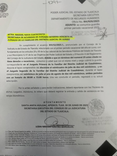 De acuerdo con información confirmada, la joven Massiel Nava Cuatecontzi fue nombrada como Secretaria de Acuerdos del Juzgado Familiar de Huamantla, un cargo de nivel 10 dentro del escalafón judicial, al que accedió de forma inmediata y sin experiencia acreditada en el servicio judicial.