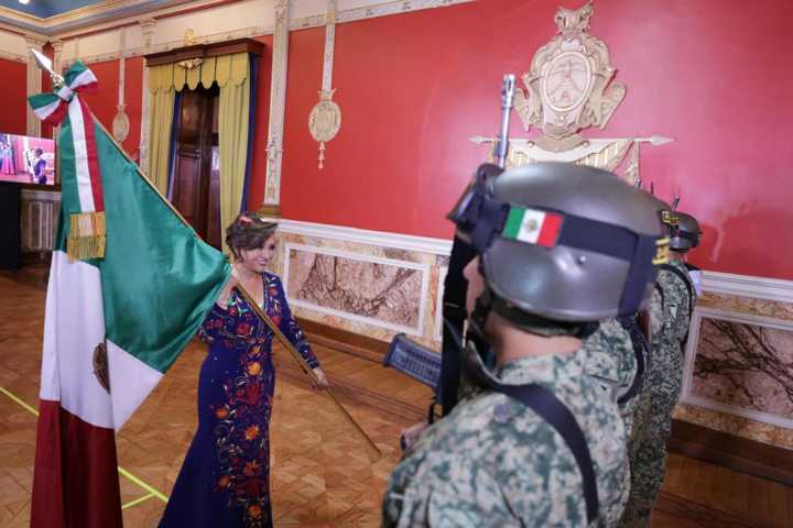 Ante cientos de asistentes, la titular del Ejecutivo estatal vitoreó a los héroes de Independencia. Alrededor de las 23:00 horas, recibió la Bandera Nacional de manos de la escolta de la 23 Zona Militar y salió al balcón para recordar a los insurgentes que iniciaron el movimiento hace más de dos siglos.