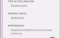 Según su declaración anual, el alcalde reportó un ingreso de apenas 200 mil pesos al año, una cantidad que resulta sorprendente para un funcionario en funciones.
