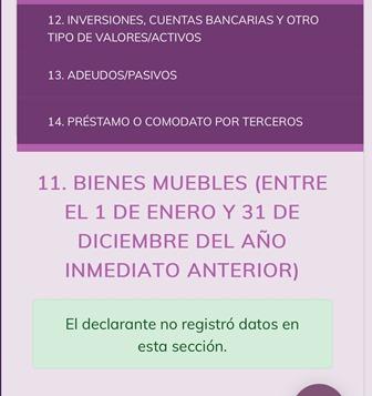 Más alarmante aún es que en el documento asegura no poseer vehículos ni bienes muebles, dejando estos apartados prácticamente en blanco.
