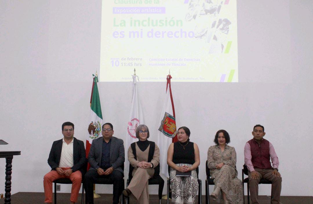 Lo anterior durante la clausura de dicha exposición en las instalaciones de la Comisión Estatal de Derechos Humanos de Tlaxcala (CEDHT), la cual fue inaugurada en diciembre de 2025 y que recorrió los municipios de Apizaco, Chiautempan, el Congreso del estado y el Tribunal Superior de Justicia del estado, espacios públicos que albergaron los trabajos de las y los artistas de “La ruta de la inclusión”.
