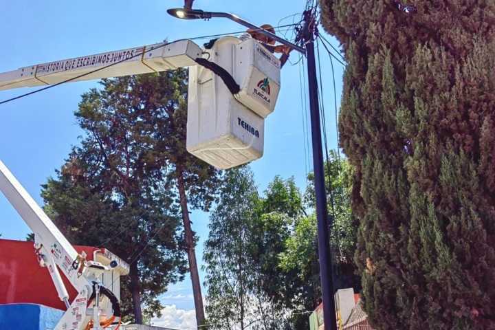 También se llevaron a cabo labores de rehabilitación de alumbrado público en Acuitlapilco y en calles de la colonia Centro, donde también se efectuaron trabajos de desrame de árboles en Privada Vista Hermosa, lo que contribuye a mejorar la seguridad y la imagen urbana de estos espacios.