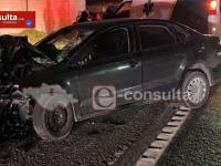 La unidad de auxilio de la Cruz Roja Mexicana circulaba sobre la autopista cuando fue embestida violentamente por otro vehículo que la impactó por la parte trasera, provocando severos daños en la ambulancia.
