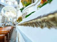 Además, de igual forma, se intervinieron 14 muros recuperando el diseño inicial del siglo XX del templo y de estos mismos se restituyeron 10 pinturas murales de manera idéntica y se intervinieron cuatro bases de los nichos, sustituyendo las molduras de yeso deterioradas, pintándolas en acabado blanco y decorándolas con polvo de oro, obra que tuvo una inversión de 323 mil 155.42 pesos.