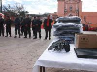 El equipamiento incluye gabardinas, chalecos de identificación, cascos, insumos médicos, mochilas aspersoras, un tanque de oxígeno portátil y equipo de fisioterapia, además de un vehículo rehabilitado para servicio