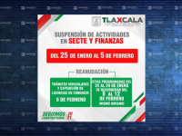 La dependencia realizará la desinfección de sus ocho delegaciones y de las oficinas recaudadoras de la SPF, por lo que del 4 al 8 de enero se suspende el servicio de atención al público.