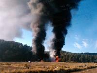 Los sujetos buscaron borrar los indicios y decidieron prender fuego a una camioneta de tres toneladas que se presume contenía cientos de litros de combustible.
