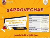 Como incentivo para el cumplimiento responsable, el alcalde informó que todos los ciudadanos que paguen su impuesto predial durante enero obtendrán un descuento del 20 por ciento.