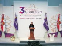 Durante su primer mensaje a la población por el tercer informe de gobierno, la gobernadora de Tlaxcala destacó tener un avance de más del 87 por ciento de compromisos plasmados en su Plan Estatal de Desarrollo